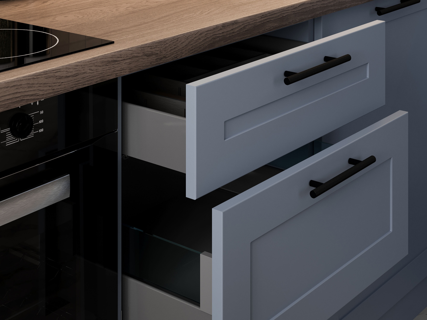 По умолчанию в стоимость входит надежная фурнитура с доводчиками